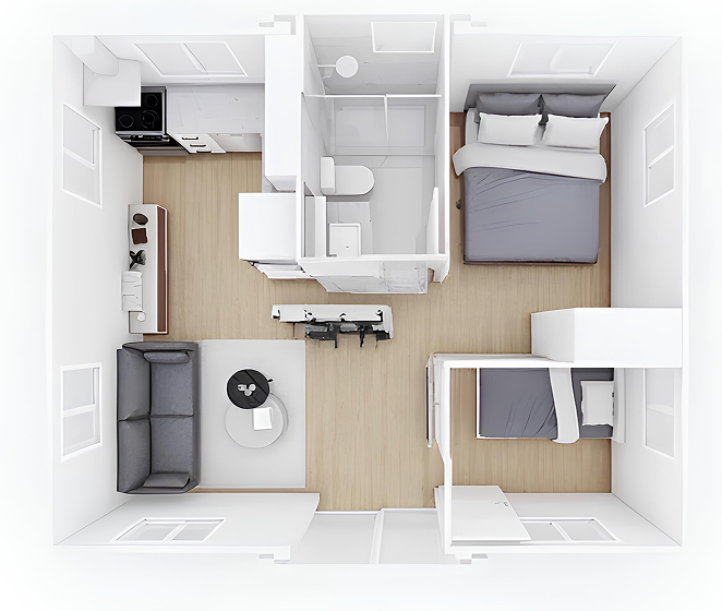 | Bathroom | Shower, Toilet, Vanity, Sink, Cabinet & Water heater (included) |