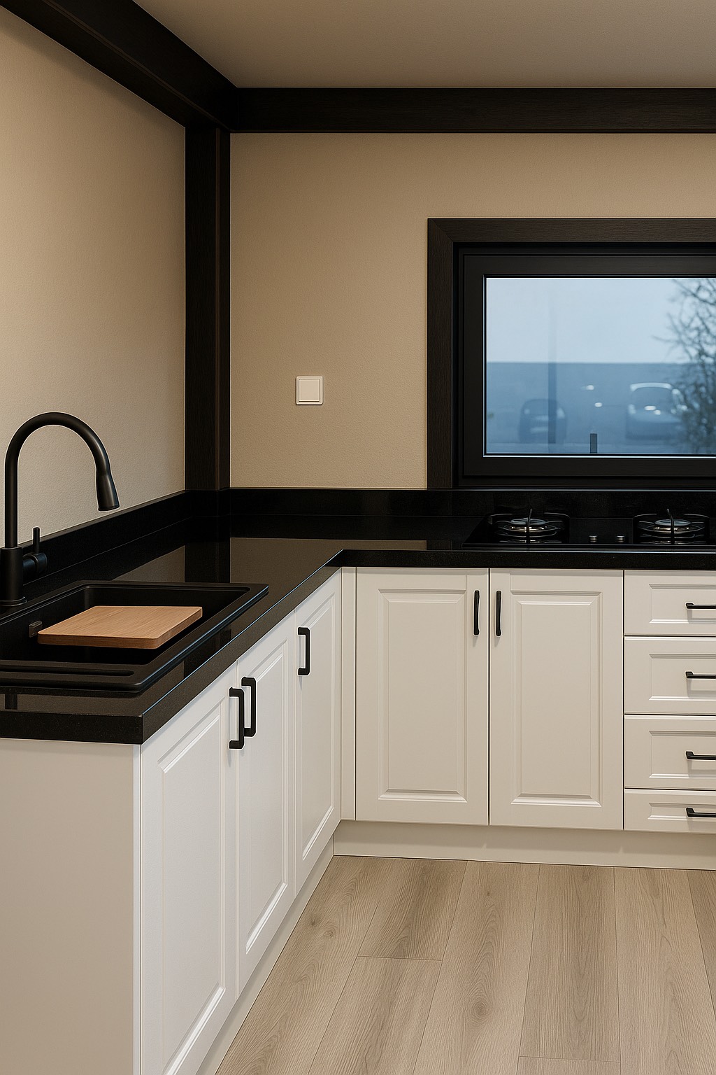 Kitchen: Base cabinets, Counter top, Sink and Faucet (included)